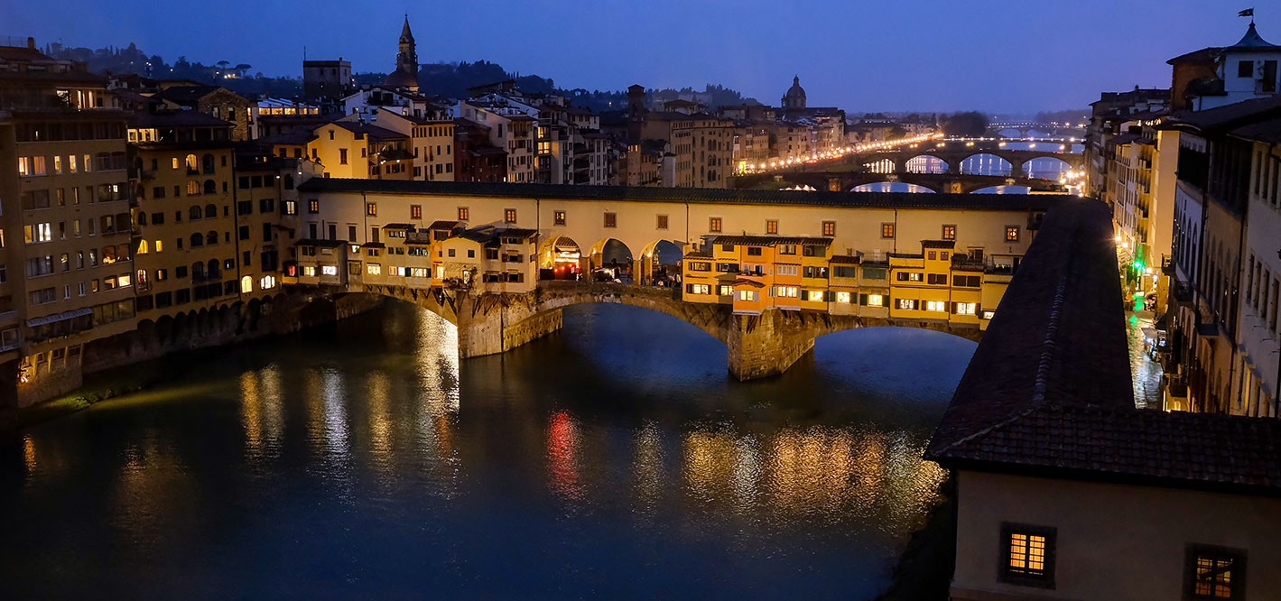 Ponte Vecchio encore, cette fois vu depuis la Galerie des Offices (jan. 2025) Photo standard simplement recadrée (et retouchée pour supprimer les reflets sur la vitre !)