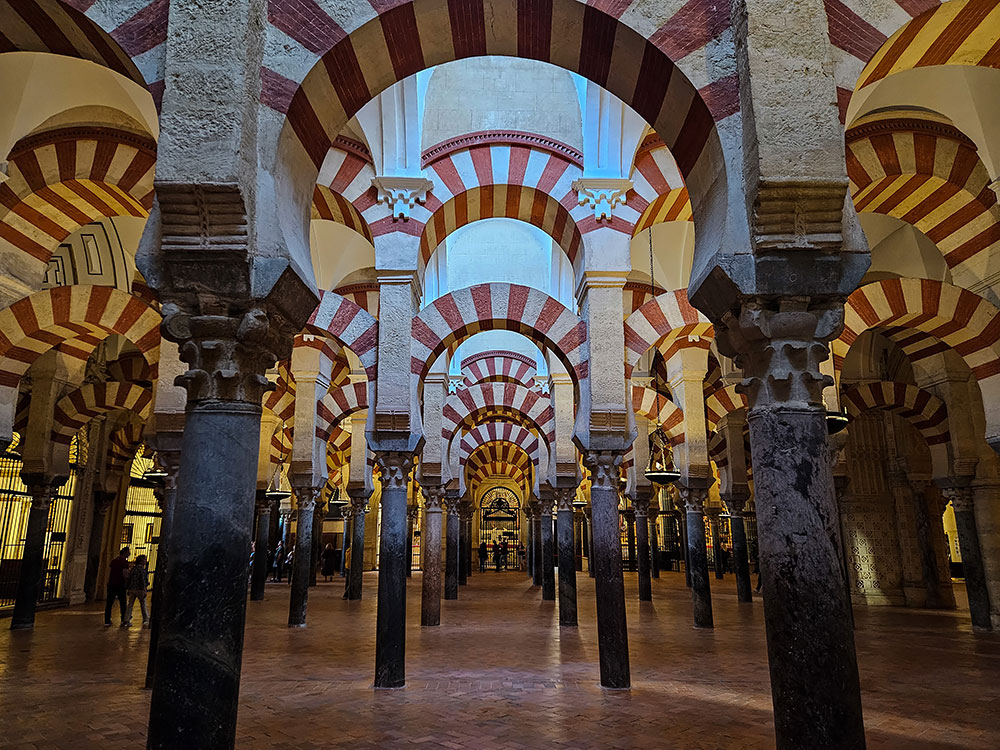Espagne : quelques-unes des 850 colonnes et doubles-arches de la Mezquita Catedral de Córdoba (nov. 2025) autre vue (et un peu d'histoire) ici