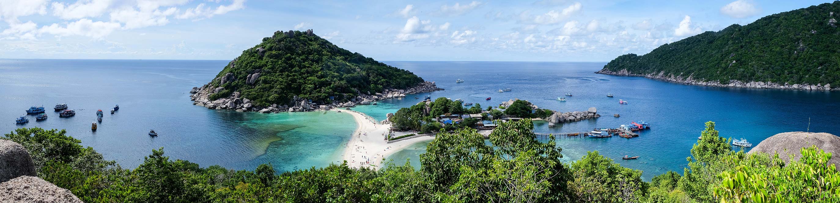 Thaïlande encore : Ko Nang Yuan, magnifique aquarium au N-O de Ko Tao... mais île privée, transformée en « boîte à fric » par des propriétaires plus soucieux de leur fortune que du bien-être de leurs hôtes : je déconseille à quiconque cette île-hôtel hors de prix, eu égard à la calamité du service - un comble, dans un pays aussi accueillant! (juillet 2015) Collage de 3 photos