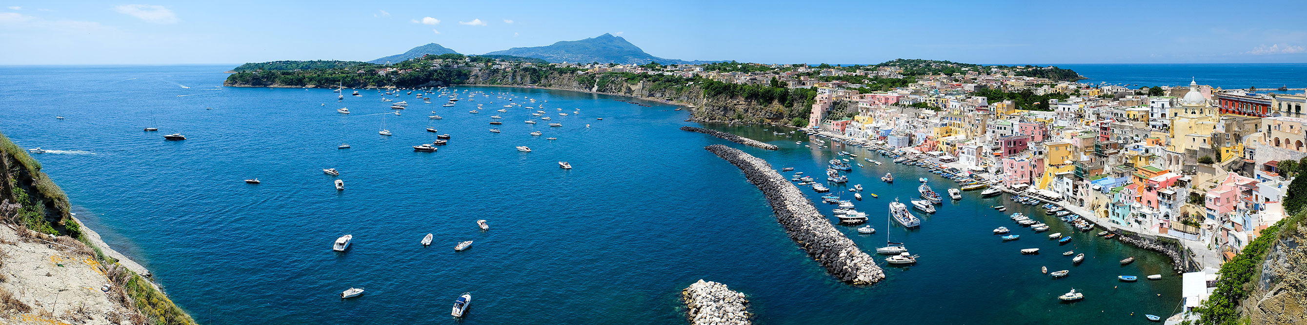 Italie : île de Procida (au large de Naples - dont vous pouvez voir un panorama vertical (si, si) ici), marina Corricella : incontestablement l'un des plus beaux villages de pêcheurs qu'il m'a été donné de contempler (juin 2016) Collage de 4 photos prises à main levée