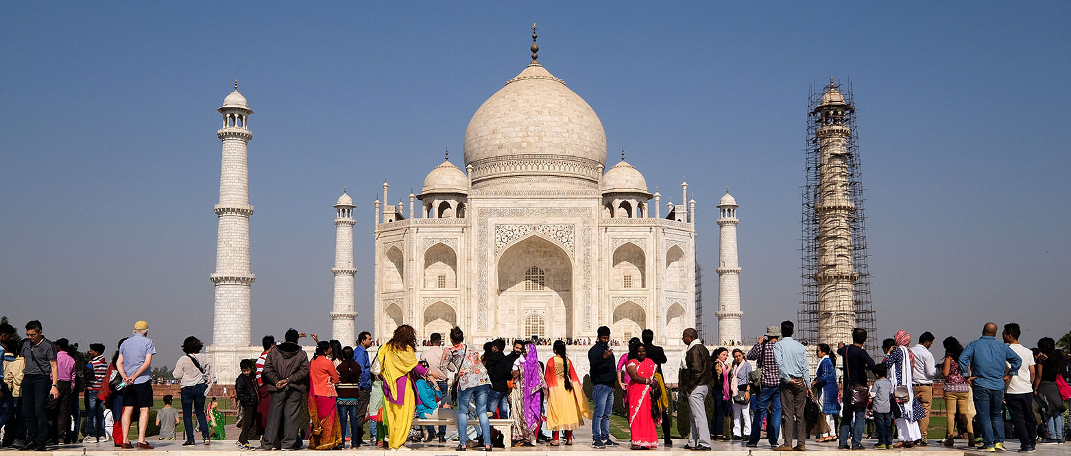 Inde : le somptueux Taj Mahal, mausolée construit par l'empereur moghol Shâh Jahân pour son épouse Mumtaz Mahal (« la lumière du palais »), entre 1631 et 1648 (novembre 2016)