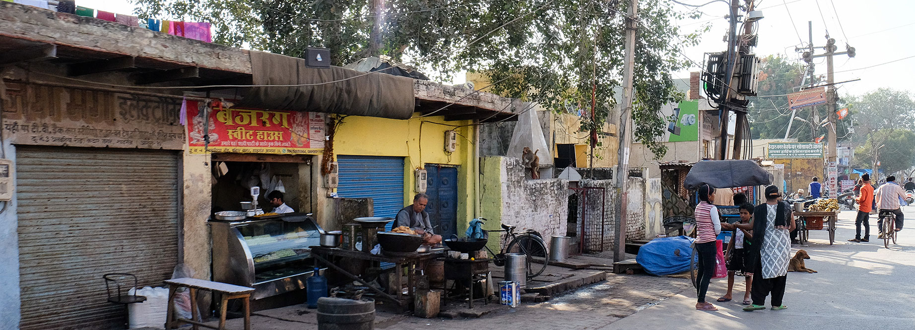 Inde : non loin de là, sur la route d'Agra à Fatehpur Sikri, la réalité quotidienne de millions d'Indiens vous rattrape au détour de chaque coin de rue : contrairement à l'empereur Shâh Jahân, une majorité d'Indiens vit dans le dénuement le plus total (nov. 2016)