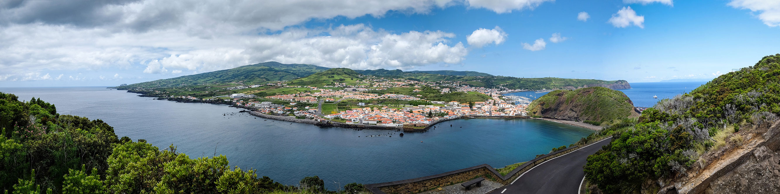 Portugal, Açores, Faial : Horta, anse de Porto Pim vue du monte da Guia (juin 2023)