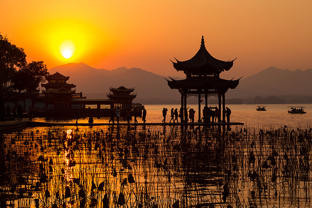 Chine : ombres chinoises (désolé...) ; un peu de sérieux : Hangzhou, West Lake (mais Hangzhou n'est pas que cette vue idyllique : autre visage) (déc. 2014)