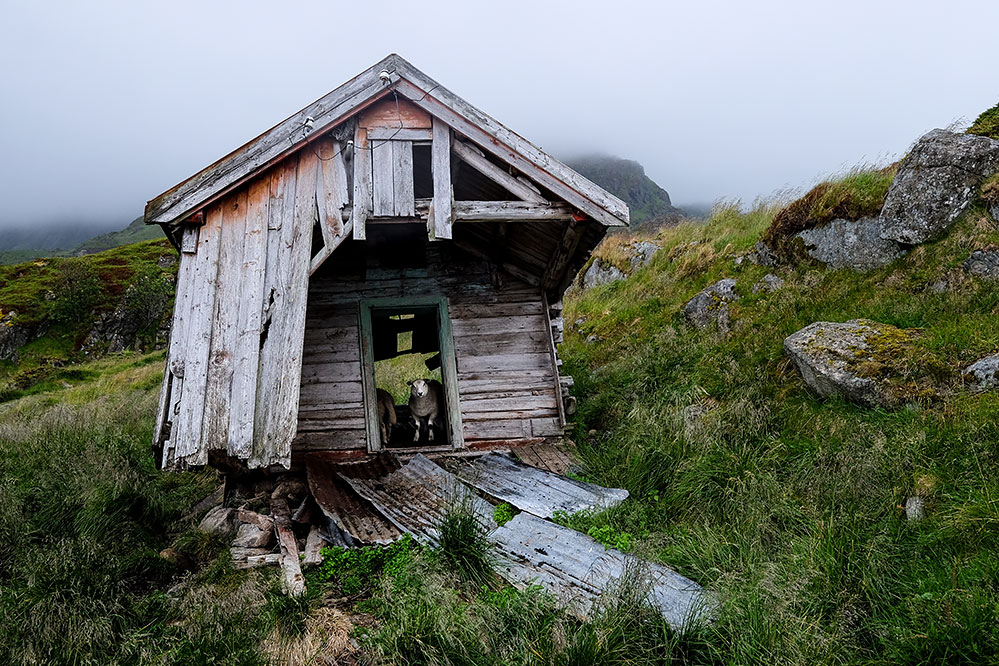 Même lieu, même date : la cabane du mouton (pour une vision plus classique des Lofoten, voir aussi ce panorama)