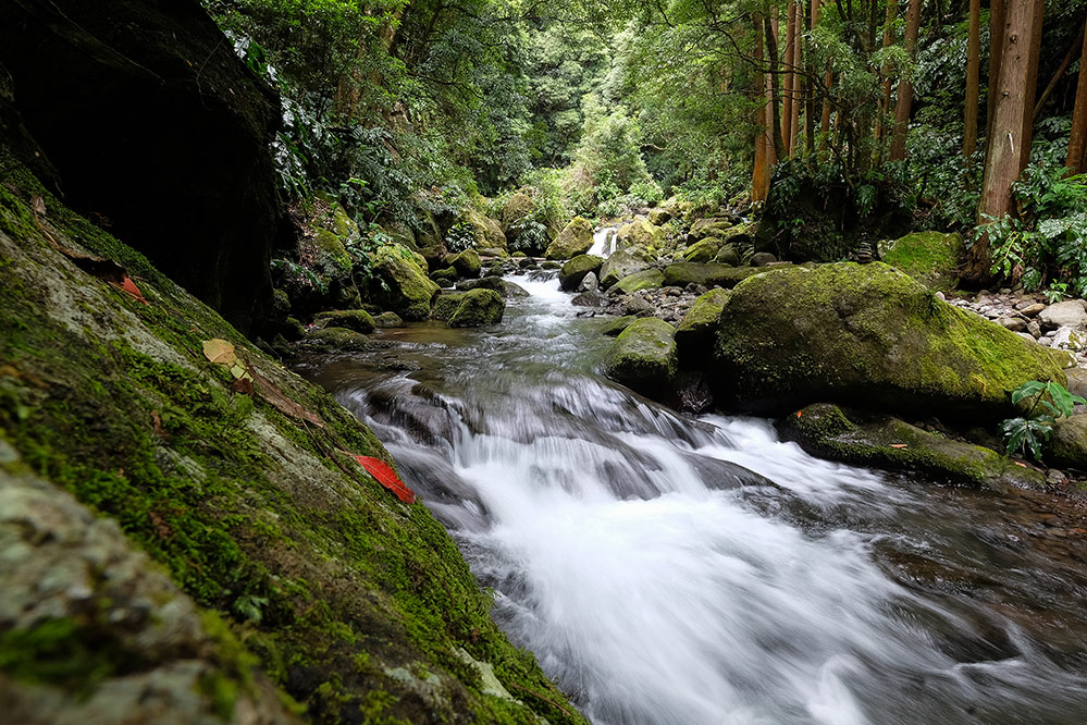 Portugal, Açores, São Miguel : torrent sous le Salto do Prego (juin 2023)