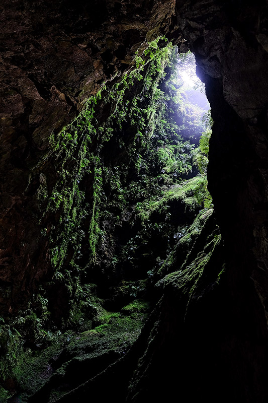 Portugal, Açores, Terceira : cavité volcanique d'Algar do Carvão (juin 2023)