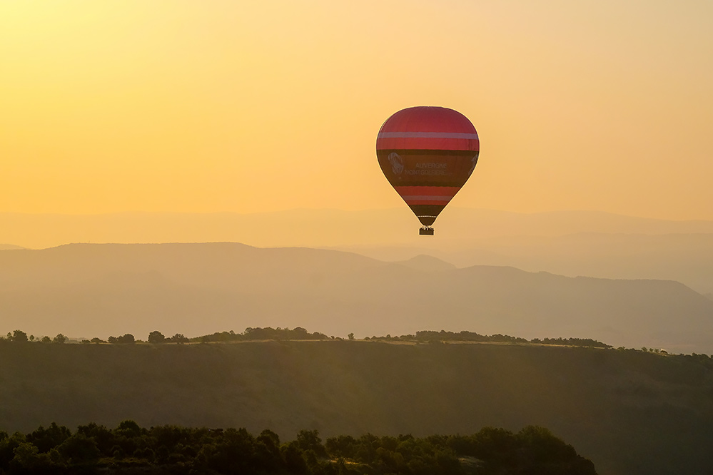 France : lever de soleil sur les monts d'Auvergne depuis une montgolfière (août 2025) 1/2