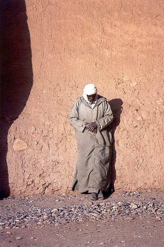 Maroc : homme adossé (Oulad Driss, janvier 2002)