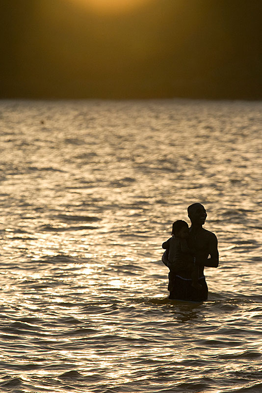 Mayotte : homme à l'enfant dans les bras (août 2009)