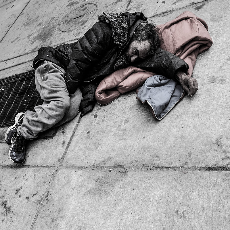 Le Canada aussi compte ses oubliés, qui dorment à même les trottoirs presque trop propres de ses riches métropoles (Toronto, mai 2018)