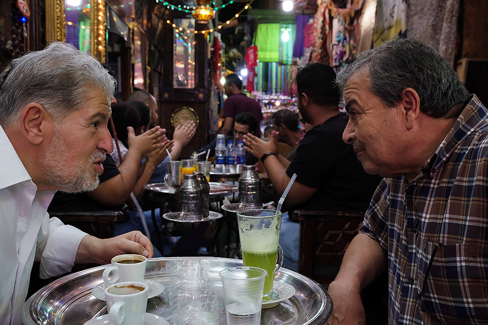 Égypte, Le Caire : discussion dans le souk Khân al-Khalili (juin 2018) liens : autre photo au même endroit ; souk de Marrakech ; souk de Zanzibar