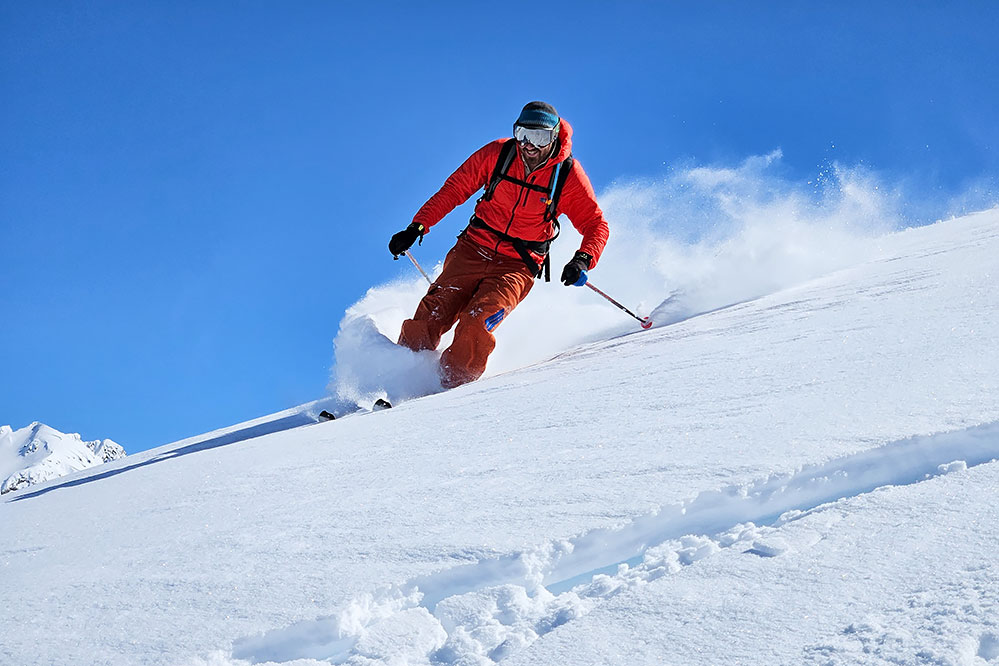 Ski de rando encore, en Haute Vallée de la Clarée cette fois : Vincent, descente du Pic Ombière (les Chtis connaissent :D) dans des conditions optimales (mars 2025)