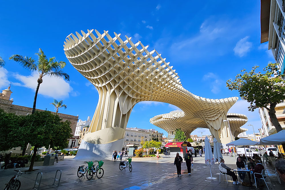 Espagne, Séville : le Metropol Parasol, dit Setas (champignons), incroyable structure de bois de 150x75 m, construite de 2005 à 2011, ...