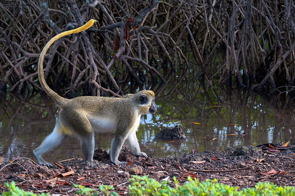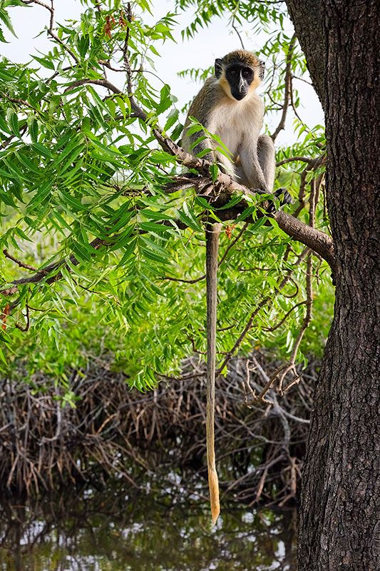 Singe vert s'enfonçant dans la mangrove (Toubacouta)