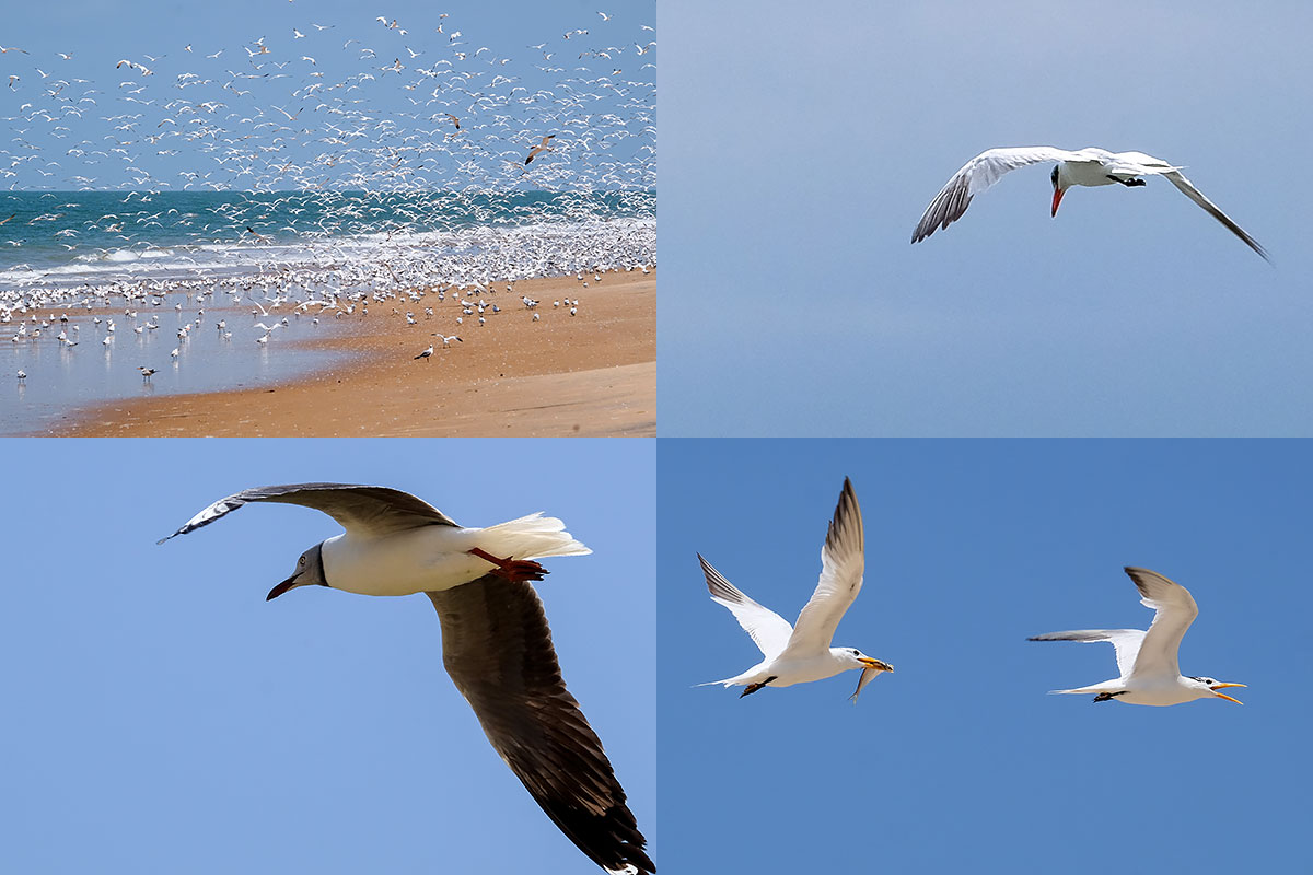 Ile aux oiseaux (Toubacouta) : sternes royales et voyageuse (?), mouette à tête grise