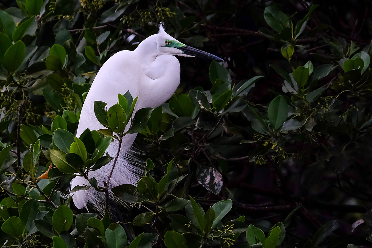 Grande aigrette dans sa parure nuptiale (Toubacouta, reposoir aux oiseaux)