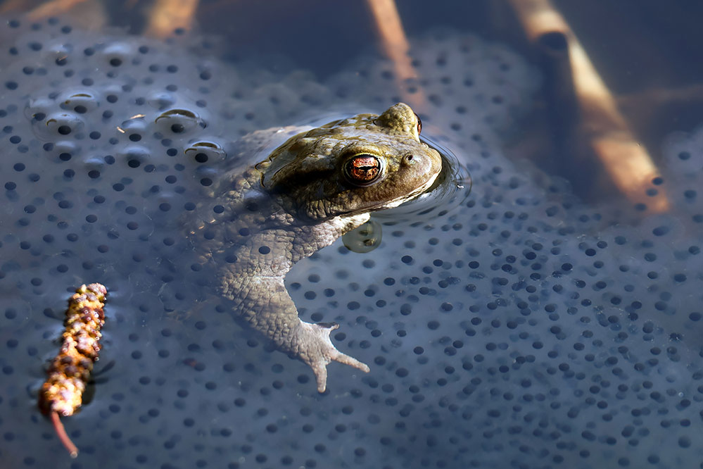 (la grappe d'œufs ici est certainement celle d'une grenouille - les femelles crapaud pondent en chapelets)