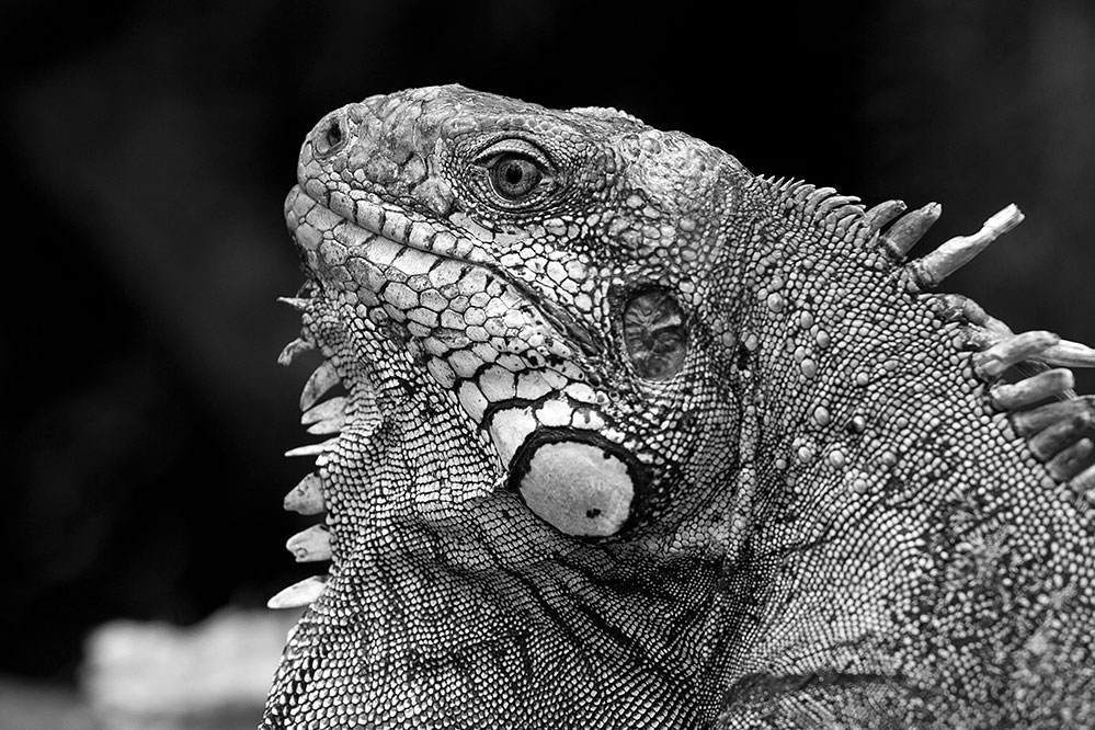 Iles des Saintes : iguane se promenant tranquillement autour du fort Napoléon, insouciant de la menace d'extinction qui pèse sur son espèce (juillet 2010)